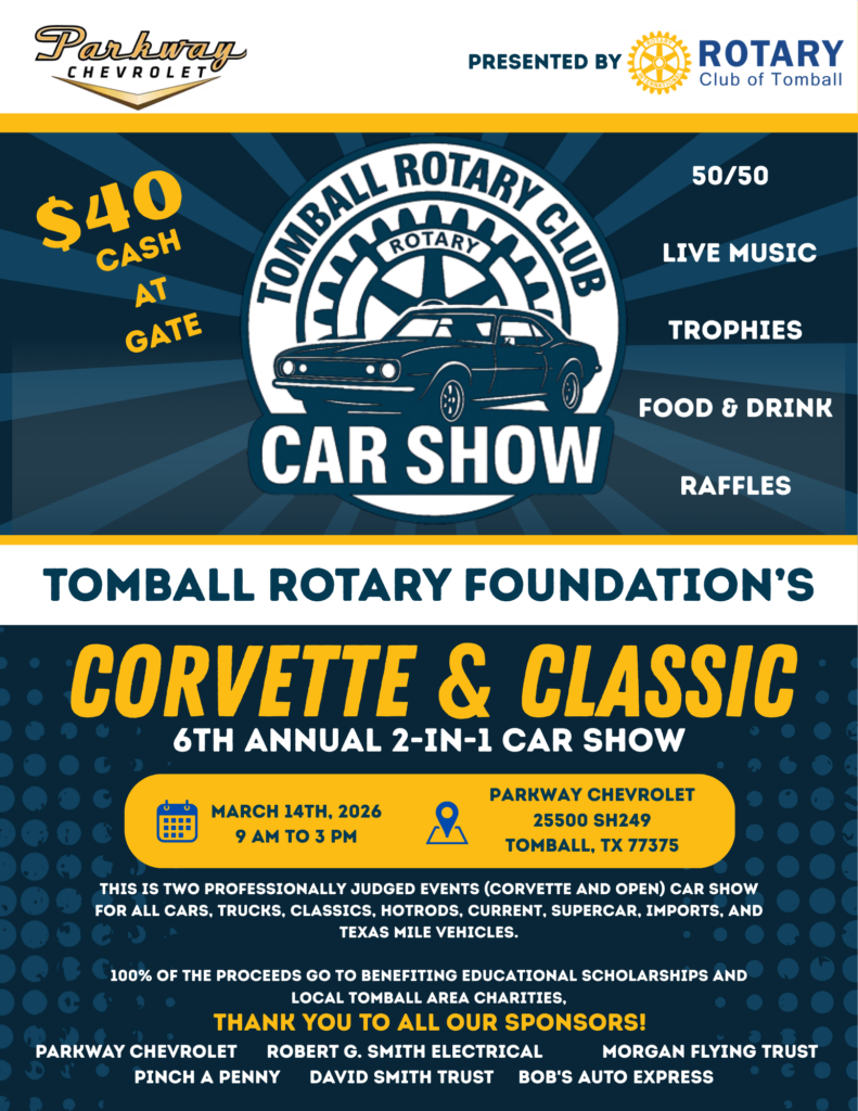 Tomball Rotary Foundation's Annual Car Show See You Soon! TICKETS FAQs about contact CONTACT David Morgan: dtmorgan70@yahoo.com Dennis Wilkins: dennis@thewwtech.com